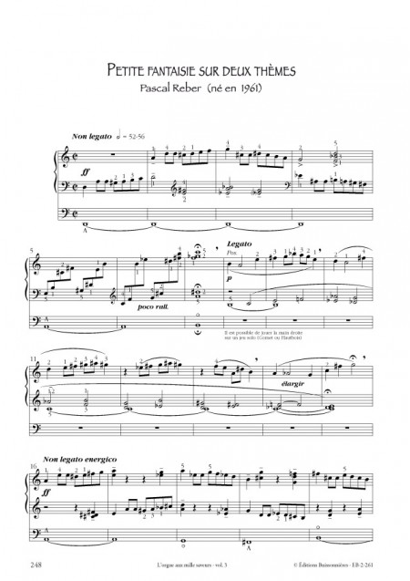 Enfin, si une majeure partie du répertoire de l’orgue est solistique, notre instrument à tuyaux n’en demeure pas moins un partenaire formidable pour l’accompagnement. Aussi, ce recueil propose quelques éléments d’harmonie, amuse-bouches préparatoires à une découverte de la basse continue ainsi que de petits arrangements pour un instrument mélodique et orgue.