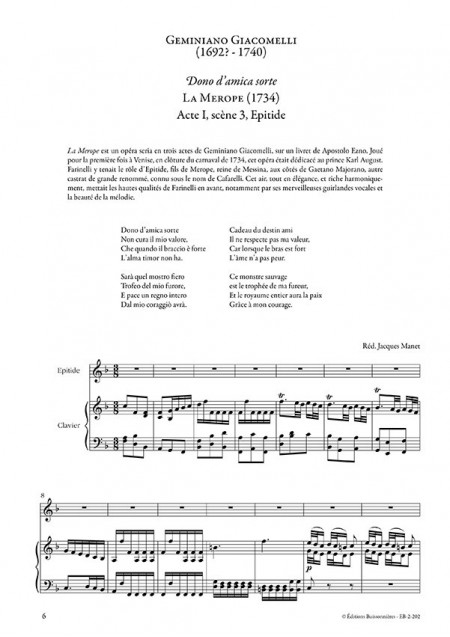 Arias pour contre-ténor de Duni, Hasse, Giacomelli pour chant et clavier (piano).